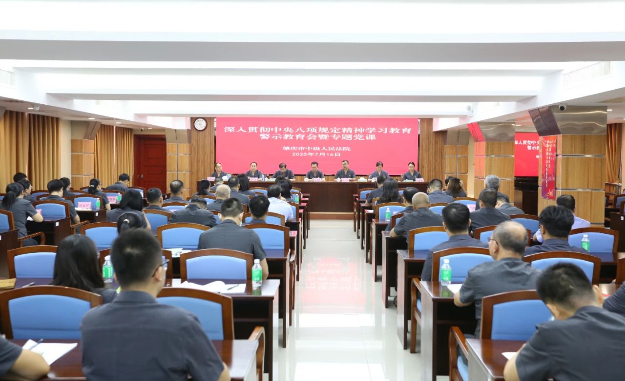 7月16日,肇庆中院举办深入贯彻中央八项规定精神学习教育警示教育会暨专题党课,深入学习贯彻习近平总书记关于加强党的作风建设的重要论述和中央八项规定及其实施细则精神,传达全省、全市领导干部警示教育会暨党章党规党纪教育培训班精神,并集中观看了广东法院廉政警示教育片《深渊之鉴》。党组书记、院长陈洪浩出席会议并讲授专题党课。