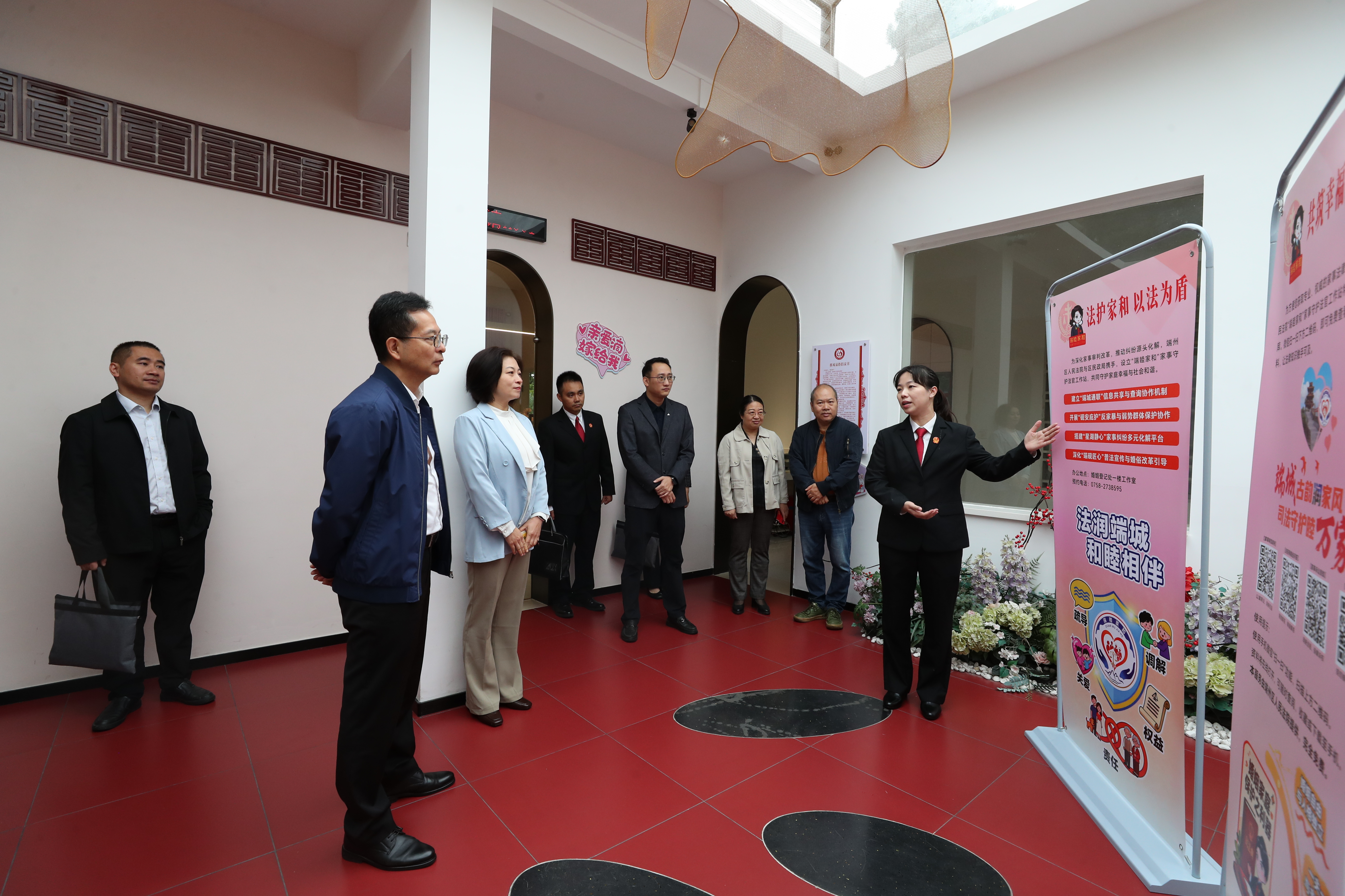 调研期间,陈洪浩一行实地走访了端州法院设立在区婚姻登记处的“端睦家和”家事守护法官工作站、区综治中心的法院调解工作室,详细了解端州法院关于家事纠纷多元化解、融入综治中心规范化建设、智慧法院赋能基层治理、诉讼服务对接等方面的工作情况。